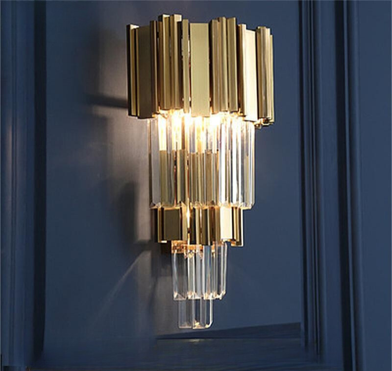 โคมไฟติดผนังสแตนเลส ขนาดใหญ่ วัสดุ : สแตนเลส+คริสตัล สี : ทอง ขนาด : 27×54 cm
